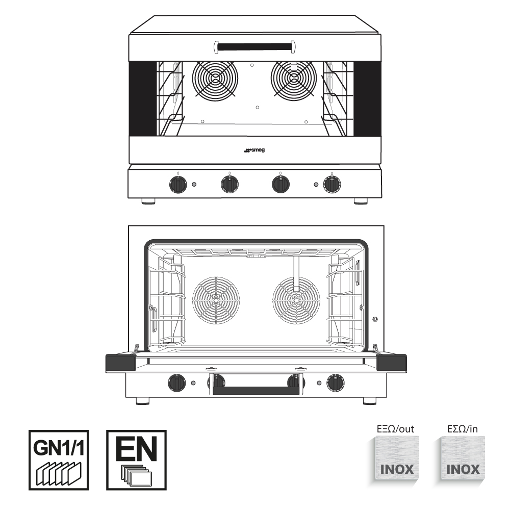| Χωρητικότητα | 4 λαμαρίνες (600×400) ή GN 1/1 |