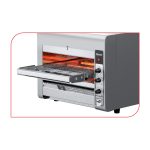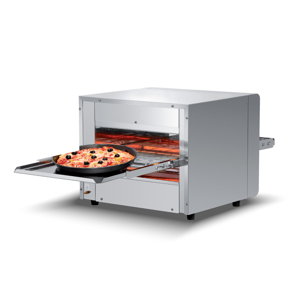 Φούρνος πίτσας 3600TB10 , Bartscher Γερμανίας. Πίτσα και σνακ στον κινούμενο ιμάντα: Με το φούρνο πίτσας αλυσίδα μπορείτε να φτιάξετε πίτσες, γεμιστές μπαγκέτες, καθώς και τοστ. Η μεμονωμένη ρύθμιση ταχύτητας του ιμάντα μεταφοράς κάνει κάθε πιάτο τραγανιστά απολαυστικό.