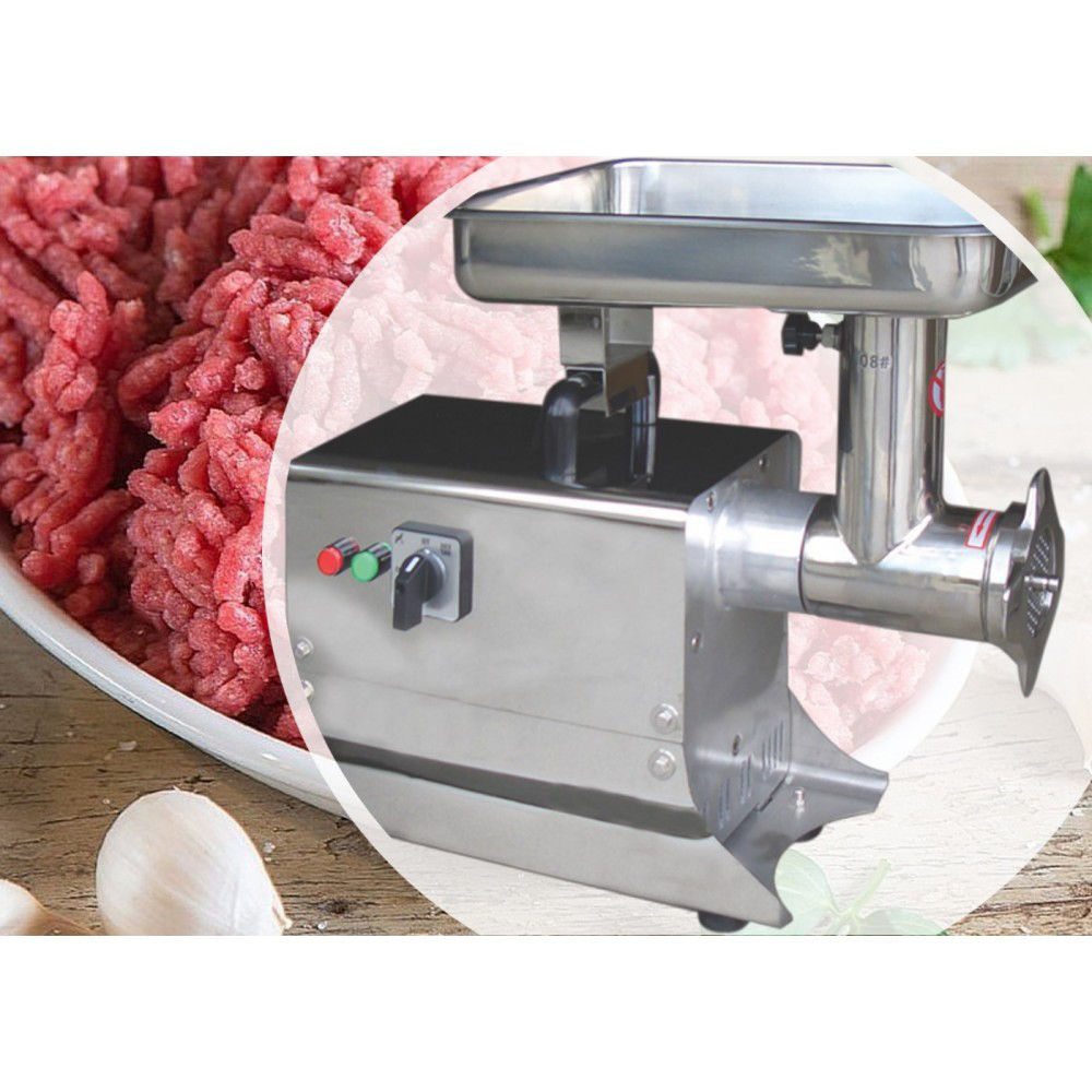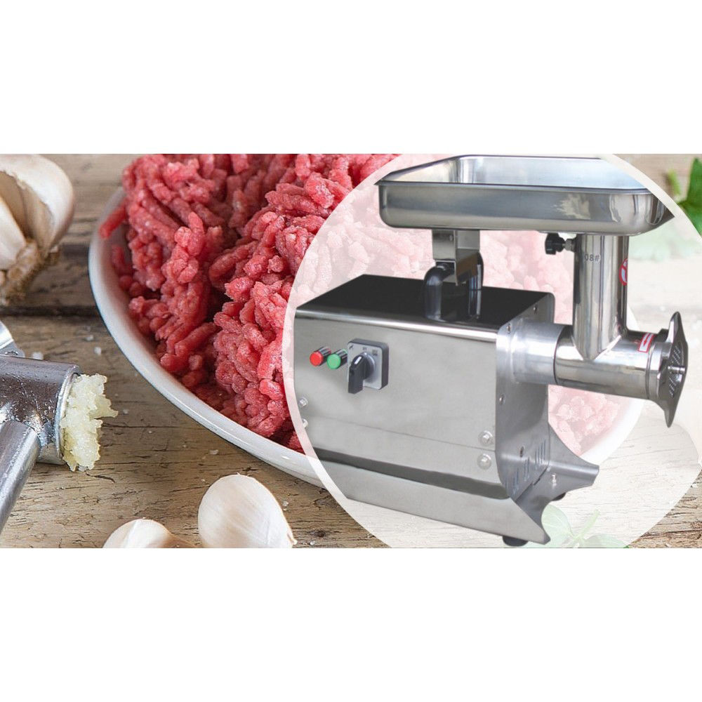 Κρεατομηχανή εξ΄ολοκλήρου inox με ατσάλινο γρανάζι για την κίνηση και μπούκα-σαλίγκαρος-στεφάνι από inox. Διαθέτει διακόπτη όπισθεν. Εγκρίσεις: CE, ETL, RoHS Listed. Ιδανική για εστιατόρια και κρεοπωλεία.