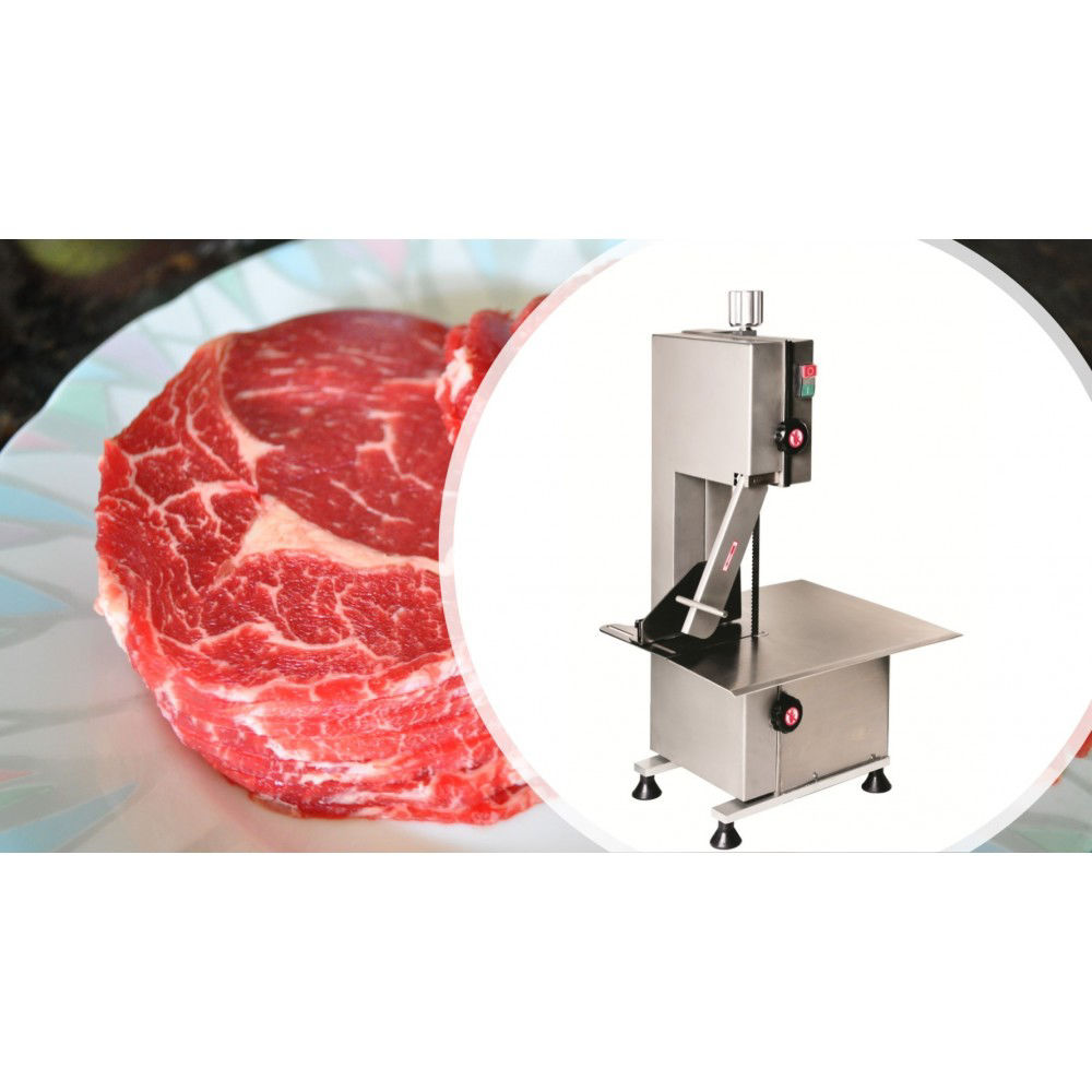 Κόβει κατεψυγμένο κρέας ή ψάρι με αλλαγή της λεπίδας. Κινητήρας υψηλής απόδοσης για συνεχή λειτουργία. Αυξάνει την παραγωγή και την υγιεινή σε όλες τις επαγγελματικές κουζίνες. Εύκολος καθαρισμός και συντήρηση, απλή εσωτερική κατασκευή. Προστατευτικό χεριού. Κατασκευή από ανοξείδωτο ατσάλι 304 AISI. Διαθέτει ρυθμιστή κοπής και ρελέ ασφαλείας. Ιδανικό μηχάνημα για κρεοπωλεία, ιχθυοπωλεία, εστιατόρια , βιομηχανίες κρέατος & ψαριού.