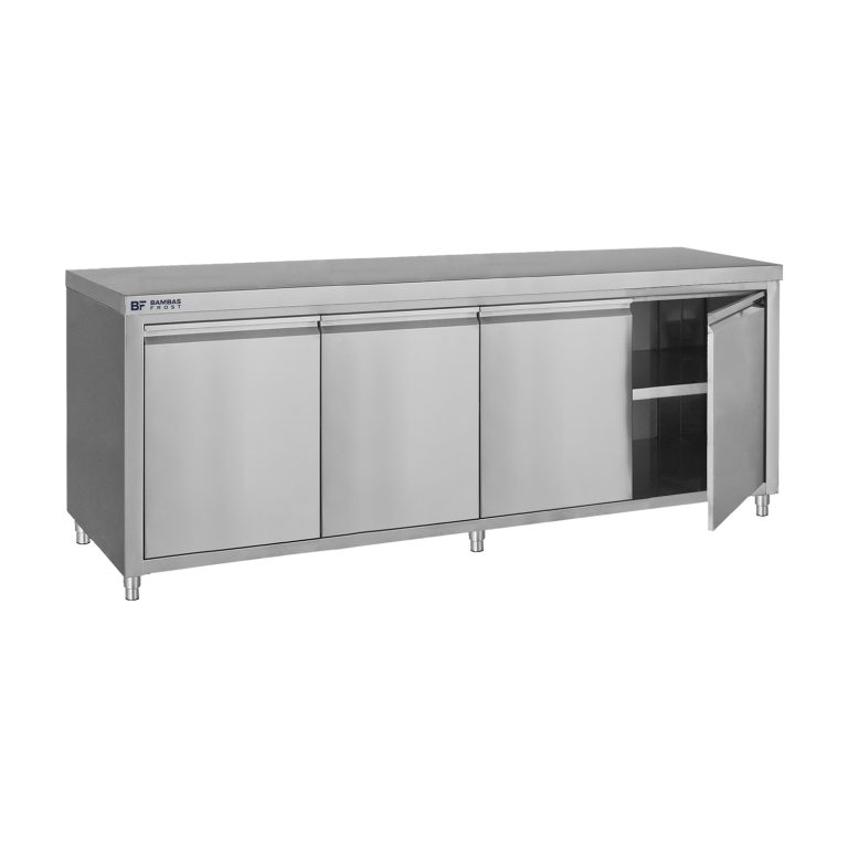 Κατασκευασμένο από ανοξείδωτο χάλυβα Πόδια ρυθμιζόμενα ανοξείδωτα Στιβαρή κατασκευή Ράφι στην αποθήκη Πόρτες συρόμενες