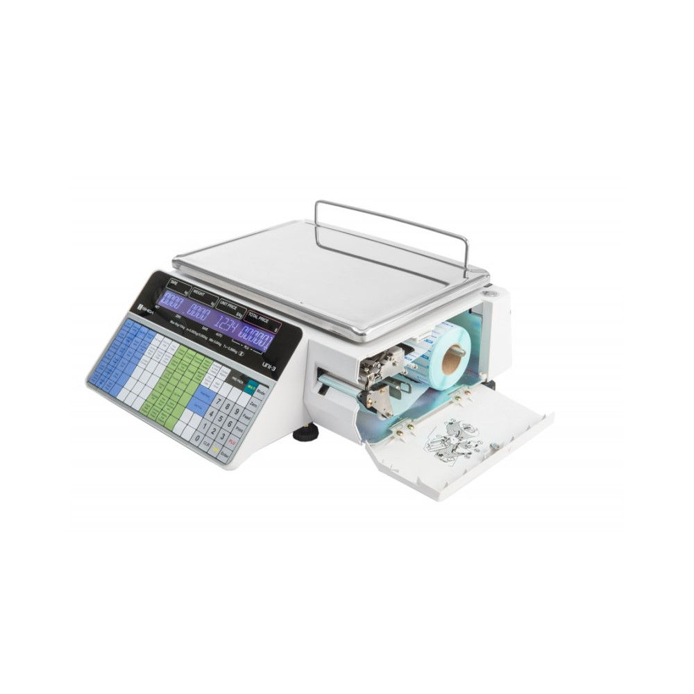Με αλφαριθμητική πράσινη φωτεινή LCD οθόνη 2 γραμμών με διαφημιστικό μήνυμα, 184 άμεσα πλήκτρα, πληκτρολόγιο κάτω. Διαστάσεις 410x437x153mm. Αναβαθμισμένες και λειτουργικές ζυγαριές ετικέτας Uni-3, ιδανικές για καταστήματα χονδρικής, κρεοπωλεία, παντοπωλεία και σούπερ μάρκετ. Η σειρά UNI-3 διαθέτει διάφορες παραλλαγές του ίδιου μοντέλου, για να μπορεί να καλύψει όλες τις ανάγκες των σύγχρονων επιχειρήσεων. Ολοκληρωμένη ζυγιστική λύση με εύκολο και φιλικό λογισμικό. Εξασφαλίζει ακρίβεια και συνέπεια για σωστές συναλλαγές κάθε φορά. Οθόνη υψηλής ποιότητας, με οπίσθιο φωτισμό για τη διασφάλιση της βέλτιστης φωτεινότητας και αναγνωσιμότητας για όλους τους χειριστές. Επεκτάσιμη βάση δεδομένων για την αποθήκευση όλων των πληροφοριών του προϊόντος και των στοιχείων συναλλαγής. Υψηλή ταχύτητα, υψηλή ποιότητας εκτύπωσης ετικετών και αποδείξεων λόγω προκαθορισμένων λειτουργιών που παραμετροποιούνται εύκολα ανά πάσα στιγμή. ΥΠ.ΑΝΑΠΤΥΞΗΣ:ΔΠΠ-281/2015
