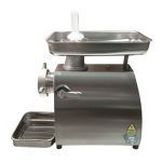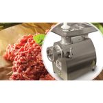 Περίβλημα και ταψί inox. Σίτα και μαχαίρι αυτοακονιζόμενα ανοξείδωτα. Μπούκα, σαλίγκαρος, στεφάνι ανοξείδωτα και inox γρανάζια. Με διακόπτη όπισθεν. Βαριάς κατασκευής, στήριξη σε λαστιχένιες βάσεις. Ενισχυμένος αθόρυβος κινητήρας 1200 στροφών. Προστατευτικό κάλυμμα κατά των ατυχημάτων. Ιδανική για SUPER MARKETS, εστιατόρια & κρεοπωλεία.