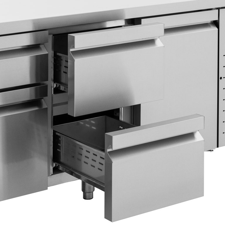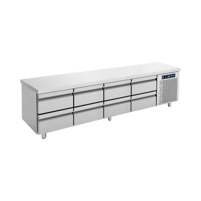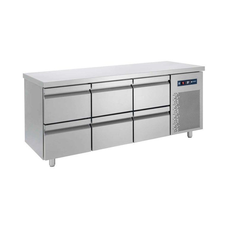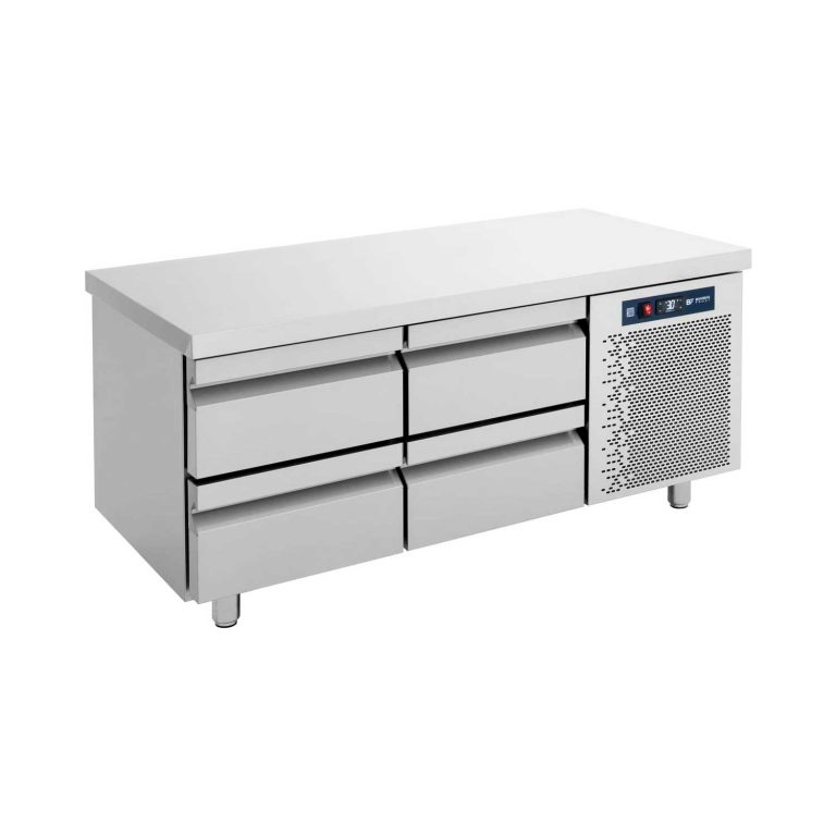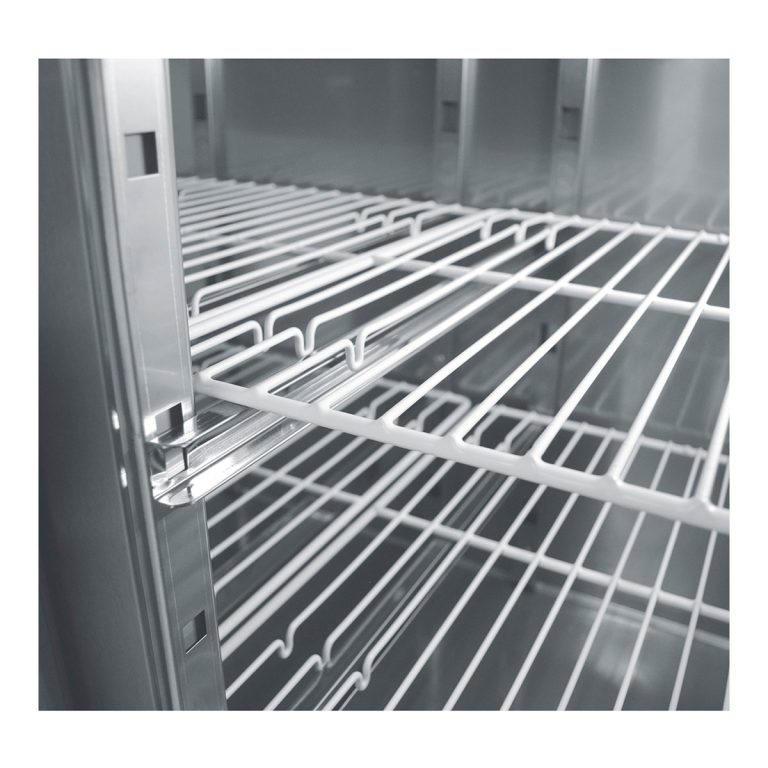Κατασκευασμένο από ανοξείδωτο χάλυβα Μόνωση με οικολογική πολυουρεθάνη πάχους 5 cm Στοιχείο βαμμένο με αντιδιαβρωτική προστασία Πάτος με υγειονομικές γωνίες Πόρτες με αυτόματη επαναφορά κάτω από 90° Πόδια ανοξείδωτα ρυθμιζόμενα Σχάρες πλαστικοποιημένες ρυθμιζόμενες καθ’ ύψος Οδηγούς inox για GN Στοιχείο βεβιασμένης κυκλοφορίας